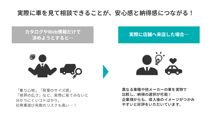 「これからの働き方や事業成長に合う車とは何か」を共に考える。